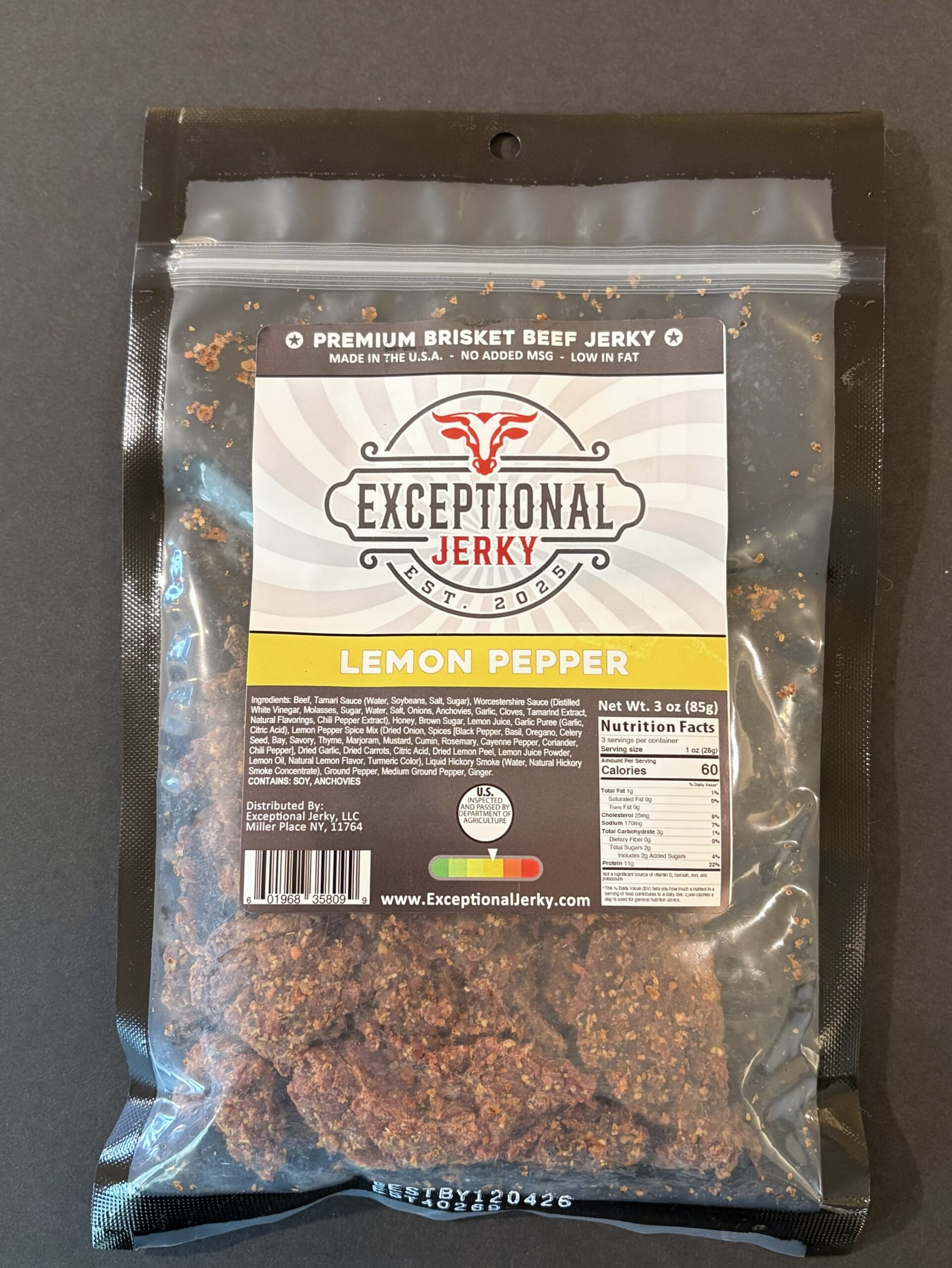 Lemon Pepper Brisket Jerky brings a fresh twist to classic jerky. Made from premium brisket, this flavor combines zesty lemon with cracked black pepper for the perfect balance of tangy and savory in every tender bite.