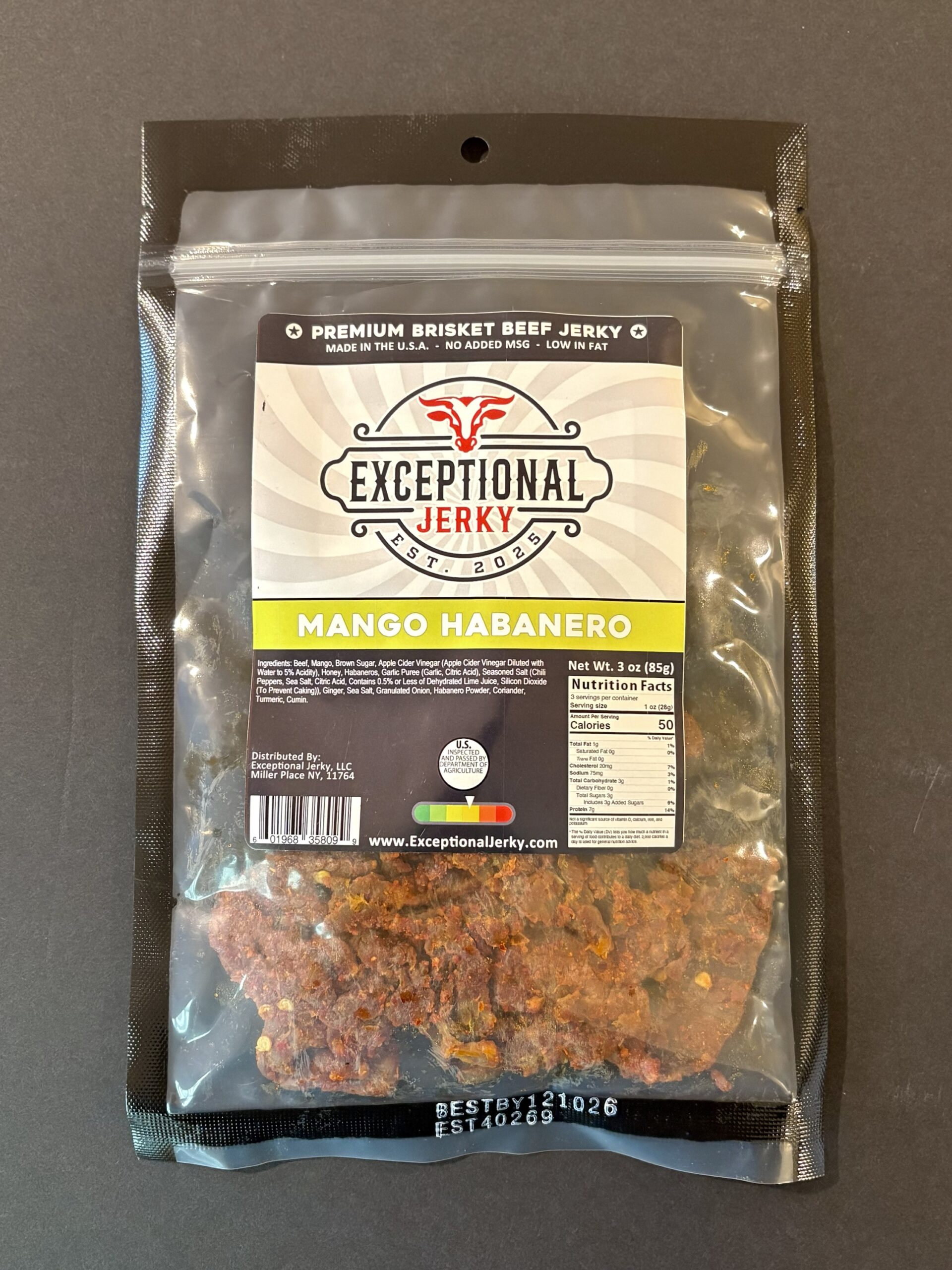 Sweet meets serious heat. Our Mango Habanero Brisket Jerky delivers the perfect combo of tropical mango sweetness and a bold habanero kick that builds with every bite.
